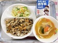 今日は、「彩の国納豆」がついています。 埼玉県では、川島町などで大豆の生産がさかんです。埼玉県産の大豆でつくった納豆は、大粒で一味ちがうおいしさです。 納豆は、昔から食べられいる日本の伝統的な食品です。蒸した大豆に納豆菌をつけて発酵させてつくります。納豆には、体をつくるもとになるたんぱく質と、ビタミンB1が多く含まれています。また、納豆を混ぜると独特なねばりが出ます。これは、ナ...»続きを読む