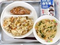 10月1日(水)の給食【ぎょうざ丼(麦ご飯)、かきたま春雨スープ、牛乳】