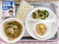 9月30日(火)の給食【和風つけめん(ホット中華めん)、わかめサラダ、手作り鬼まんじゅう、牛乳】