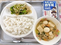 10月8日(水)の給食【麦ごはん、海鮮豆腐、ナムル、牛乳】