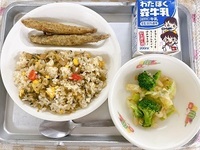 11月10日(月)【しゃくし菜チャーハン、ししゃもフリット、深谷ねぎサラダ、牛乳】