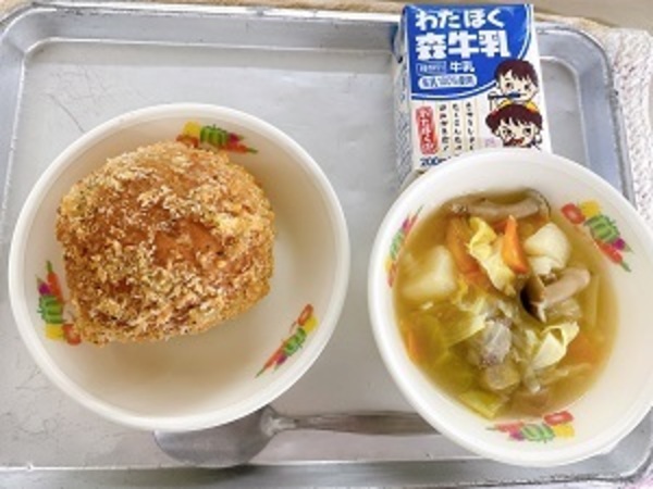 12月4日(木)の給食【手作りカレーパン、具だくさんポトフ、牛乳】