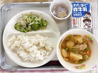 12月15日(月)の給食【麦ご飯、彩の国納豆、肉じゃが、磯香和え、牛乳】