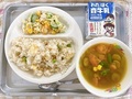 10月21日(火)の給食【ポテトピラフ、カレー風味スープ、ツナマヨサラダ、牛乳】