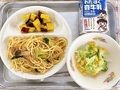 10月23日(木)の給食【和風スパゲッティ、キャラメルポテト、コールスローサラダ、牛乳】