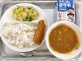 10月24日(金)の給食【カツカレー(麦ご飯)、こんにゃくサラダ、牛乳】