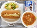 12月9日(火)の給食【ツナじゃがコッペパン、ミネストローネ、コーンサラダ、牛乳】