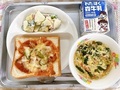 1月30日(金)の給食 6年生が考えた献立【ピザトースト、ニラ玉スープ、りんごのサラダ、牛乳】