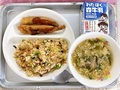 2月2日(月)の給食【小松菜チャーハン、ししゃもフライ、かきたまスープ、牛乳】
