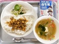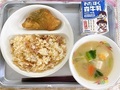 1月19日(月)の給食【ソイ丼(麦ご飯)、みそけんちん汁、ゆかり和え、牛乳】