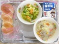 1月20日(火)の給食【ツイストパン、じゃがいもとコーンのミルク煮、フレンチサラダ、牛乳】