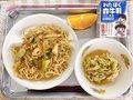 2月4日(水)の給食【五目あんかけ焼きそば、バンバンジーサラダ、オレンジ、牛乳】