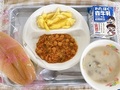 9月9日(火)の給食【コッペパンスライス、スラッピージョー、ポテトフライ、クラムチャウダー、牛乳】